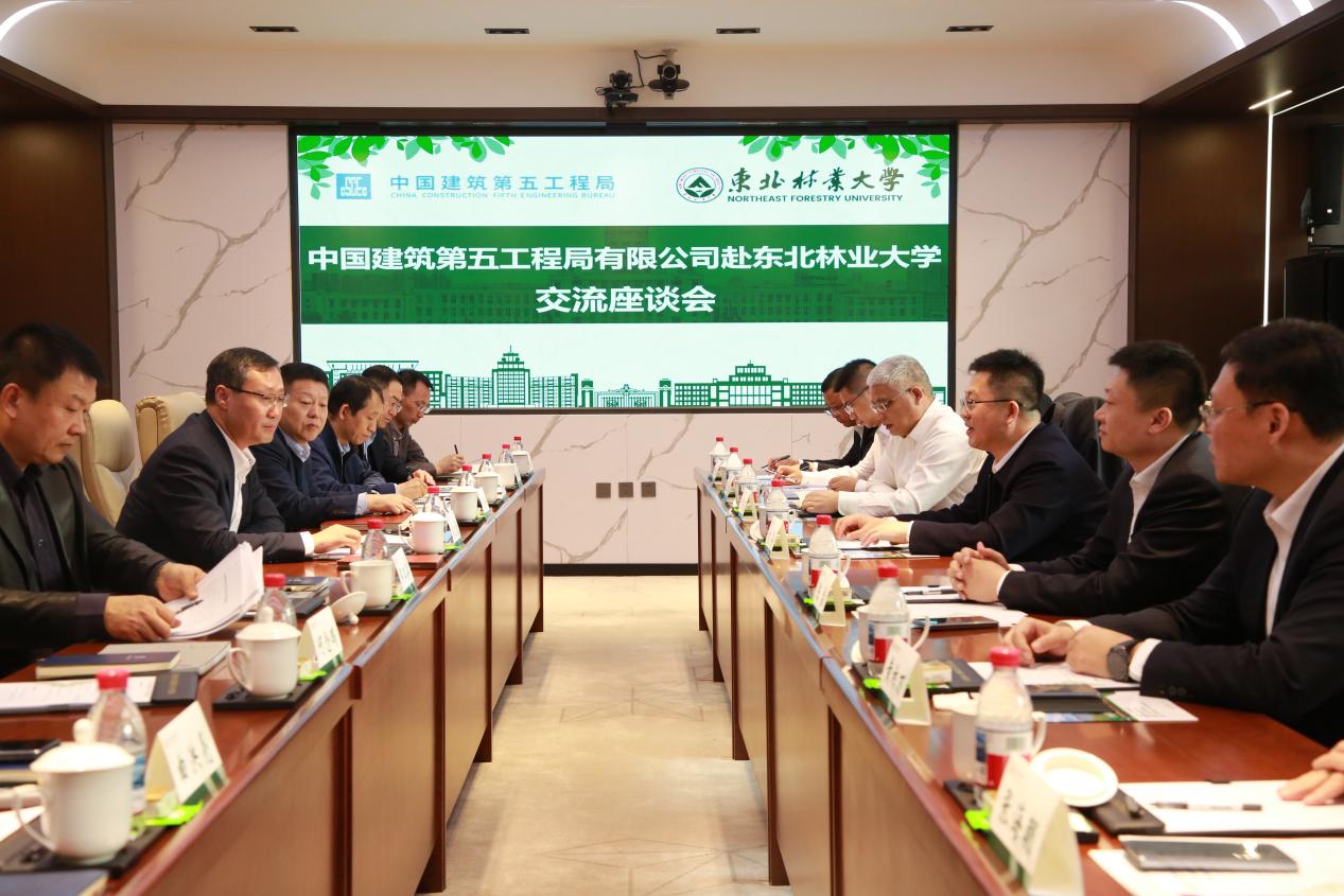 座谈会上,宋文龙代表学校向刘冬一行表示欢迎,并简要介绍了学校的办学历史、办学定位、办学规模以及当前学科专业、人才培养、科学研究等方面的发展情况。他表示,新时期学校将认真贯彻落实《教育强国建设规划纲要(2024—2035年)》各项要求,着力实现高等教育内涵式发展。他强调,东北林业大学长期以来高度重视校企合作交流,将产教融合作为推动学校发展建设的有力抓手,面向未来,学校愿与中建五局在人才培养、科技创新、学生就业等领域加强务实合作,欢迎中建五局充分发挥企业优势,为学校发展建设提供帮助与支持,实现科教融汇、产教融合的校企合作新局面。